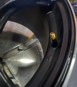 今回の作業は、現在装着の17インチタイヤを一旦ばらして前後入替と&鉄バルブをゴムバルブへ交換してお持ち帰り。