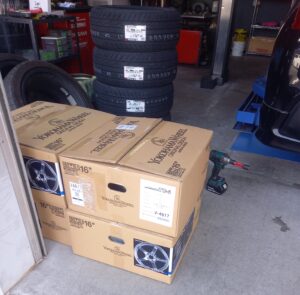 16インチ新品ホイール&タイヤお持ち込みでの交換の作業です。